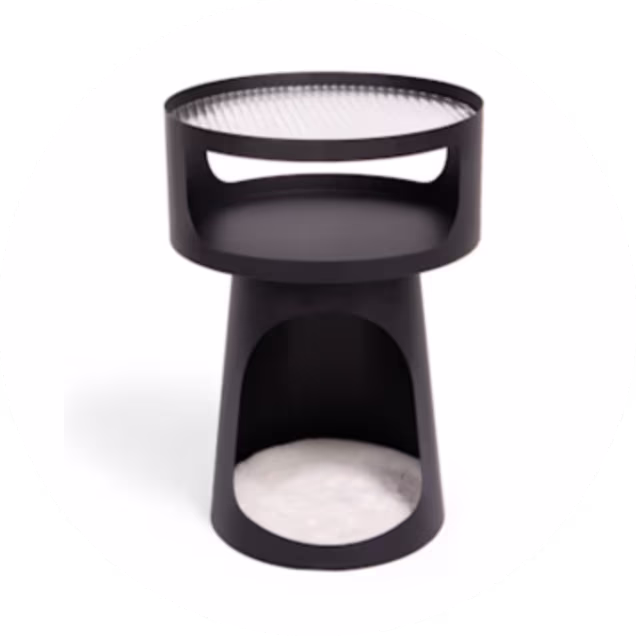 This stylish end table has a modern look and is designed with a small pet condo hideaway in the base, giving your small dog or cat a subtle and cozy place to relax and nap that doubles as totally functional furniture for you.