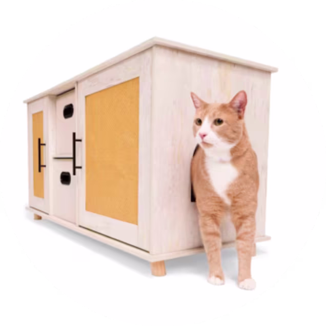 This modern cabinet doubles as stylish home décor while discreetly concealing a litter box inside. Featuring a subtle single entry for easy kitty access, it saves space, elevates your furnishings, and provides your cat with a private place to do their business.