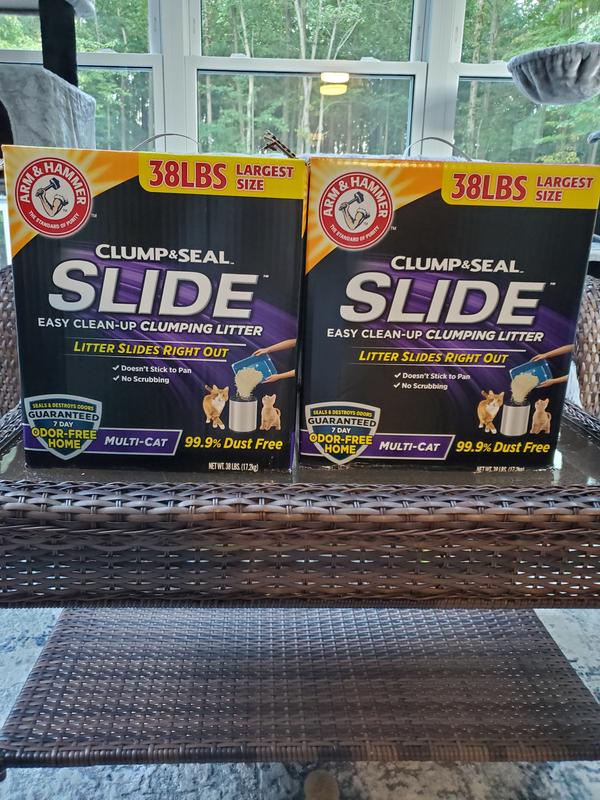It's time to end scraping and scrubbing with Arm & Hammer SLIDE Easy Clean-Up Clumping Litter. Our revolutionary formula means the litter slides right out of the litter box, making cleanup easy. Plus, Clump & Seal technology seals and destroys odor for a 7-Day Odor-Free Home, Guaranteed. Fellow cat lovers like you put their trust in ARM & HAMMER. Join them and see how quick and easy clean-up can be!