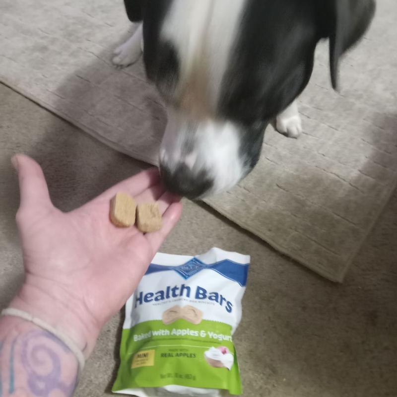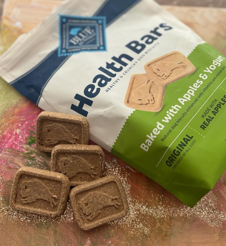 - - MADE with APPLES: BLUE Health Bars dog treats prove that a healthy treat can be tasty, too; with ingredients like oatmeal, apples, and yogurt, these bars feature the ingredients you'll be proud to feed your furry family members