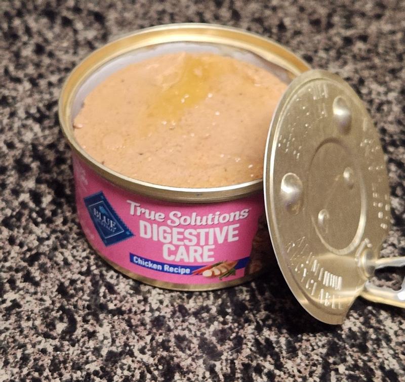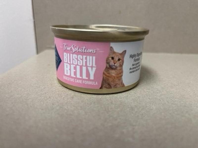 - - Contains: Twenty-Four (24) 3-oz cans of BLUE True Solutions Blissful Belly Digestive Care Natural Adult Wet Cat Food; Chicken