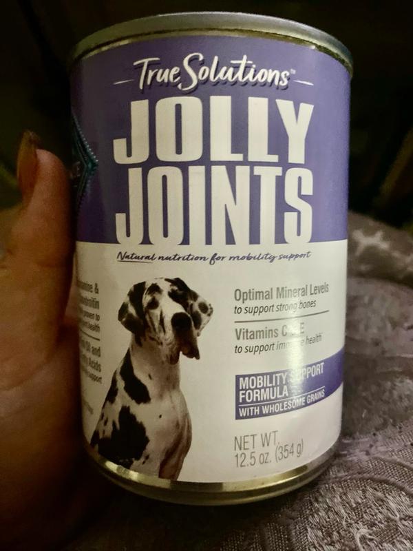 - - Contains: Twelve (12) 12.5-oz. cans of BLUE True Solutions Jolly Joints Adult Wet Dog Food, Chicken