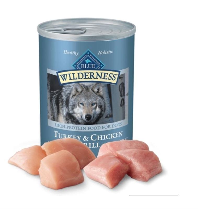 - - Contains: Twelve (12) 12.5-oz. can of BLUE Wilderness Adult Wet Dog Food, Turkey & Chicken Grill