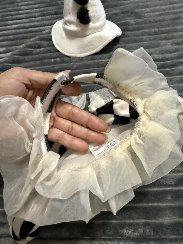 FOR PET USE ONLY. NOT A CHILD'S COSTUME OR TOY. Intended to be used for a short duration and always under adult supervision. To prevent injury, be sure the costume fits your pet appropriately and does not cover pet's eyes. Remove the costume if pet appears uncomfortable or in distress. Do not allow pet to chew on or ingest the costume or headwear. May be harmful if ingested. Inspect regularly and replace if any part becomes damaged. Some color transfer may occur. Keep away from open flame.