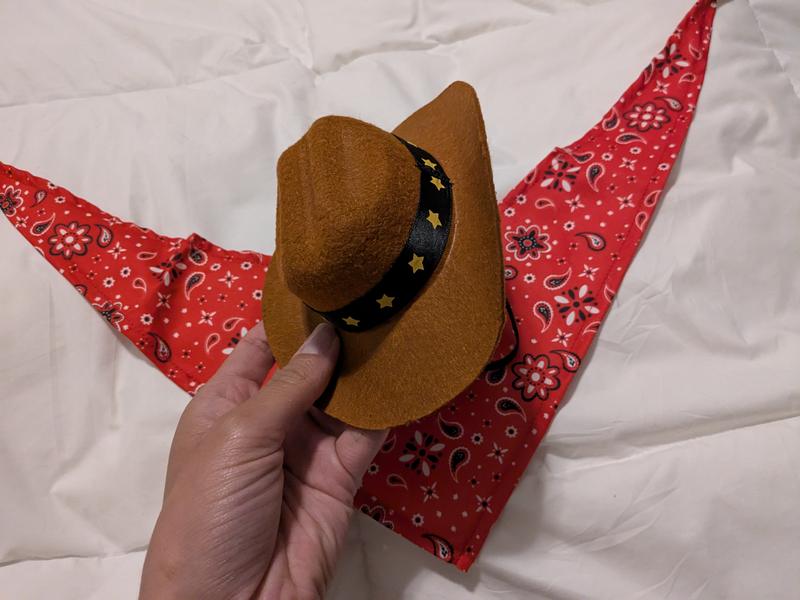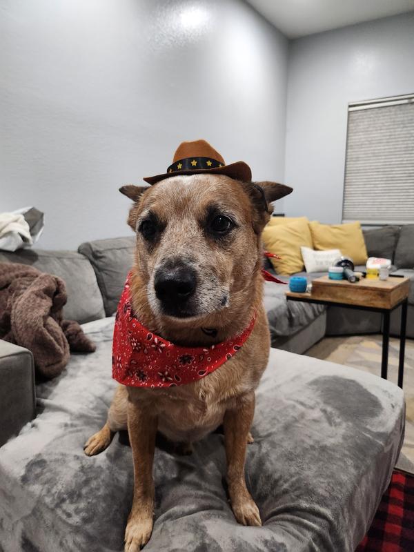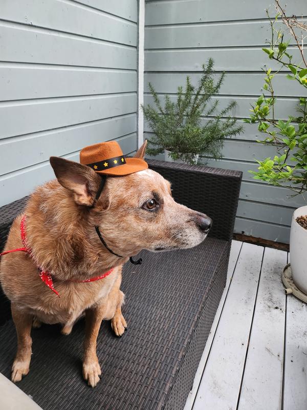 Yeehaw! Your pet will be ready to giddy up to everyone's door for treats in this Cowboy Pet Headpiece set. Whether you stalk thrilling times at twilight or prefer to creep from the comfort of your own home, Bootique has everything you need for a spooky season that's so fun, it's scary.
