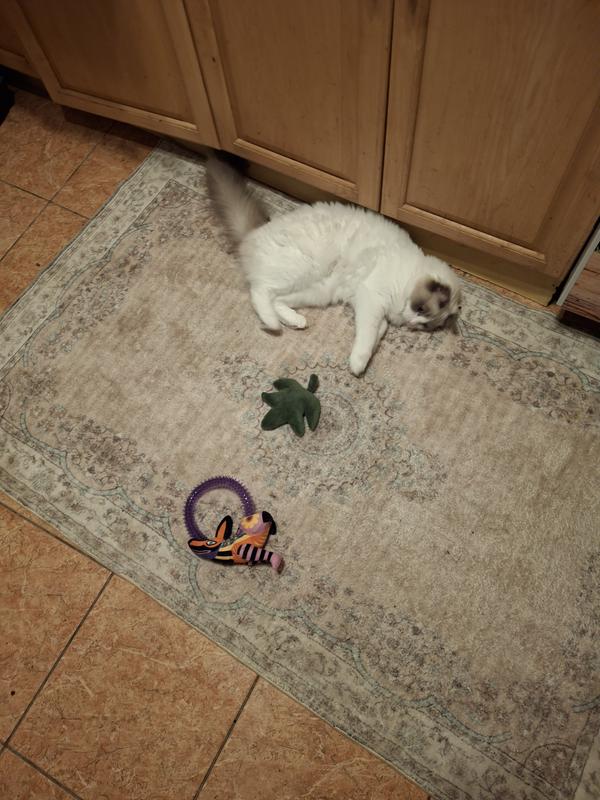 FOR PET USE ONLY. NOT A CHILD'S TOY. Small parts, strings, and small balls can present a choking hazard, gastrointestinal blockage, or strangulation risk. Always supervise pet closely during play to prevent accidental swallowing of small parts or strings. Inspect regularly. Replace if any part becomes damaged.