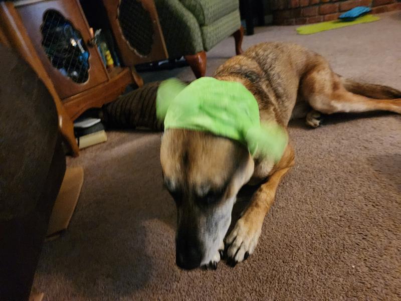 FOR PET USE ONLY. NOT SUITABLE FOR CHILDREN. Intended to be used for a short duration and always under adult supervision. May be harmful if ingested. For your pet's safety, be sure the headwear fits properly and does not cover pet's eyes. Remove headwear if pet appears uncomfortable or in distress. Inspect regularly and replace if any part becomes damaged. Color may transfer to other surfaces. Keep away from open flame.