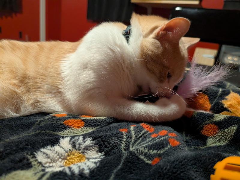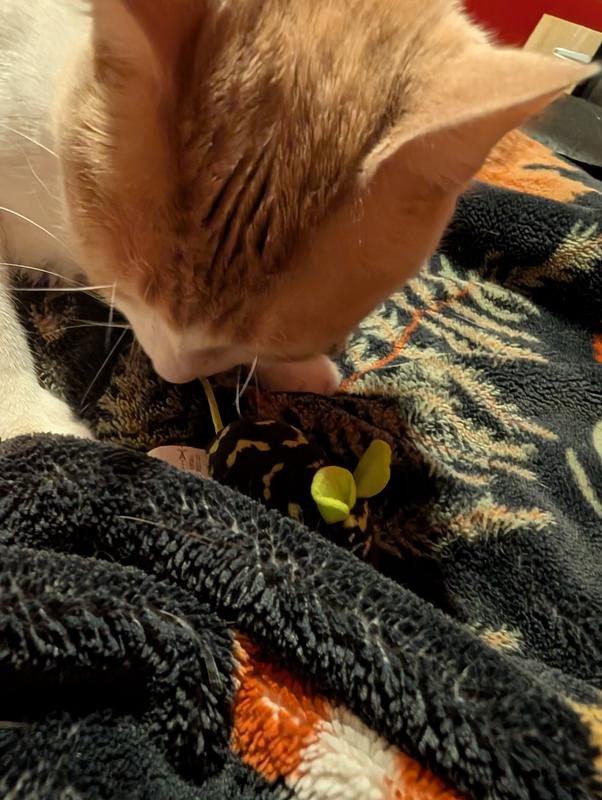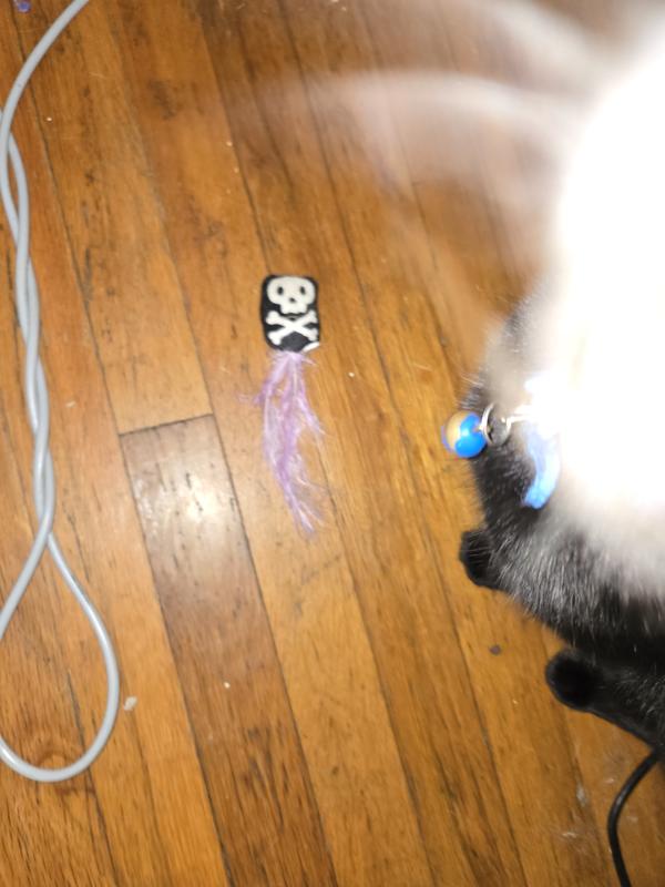 FOR PET USE ONLY. NOT A CHILD'S TOY. Small parts, small balls, and strings can present a choking hazard, gastrointestinal blockage or strangulation risk. Always supervise pet during play to prevent accidental swallowing of small balls or strings. Contains catnip. Not intended for consumption. Inspect regularly and replace if any part becomes damaged. Color may transfer to other surfaces.