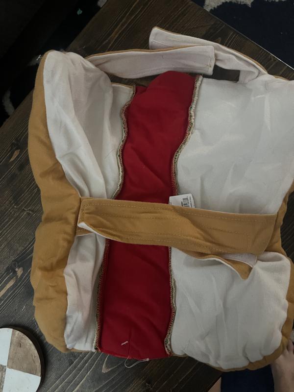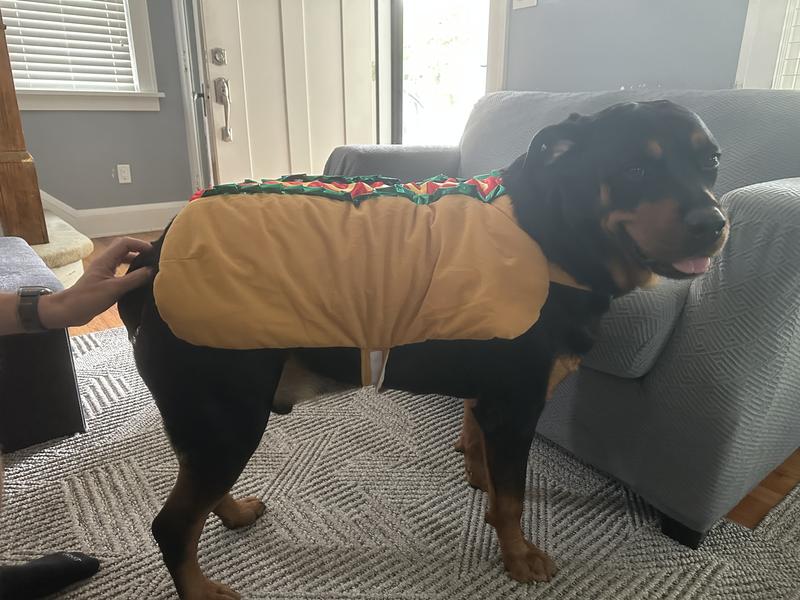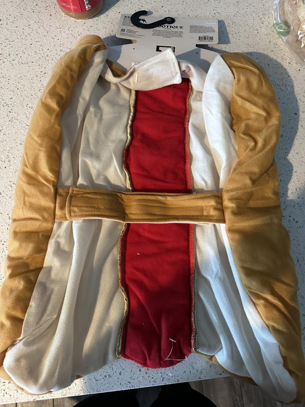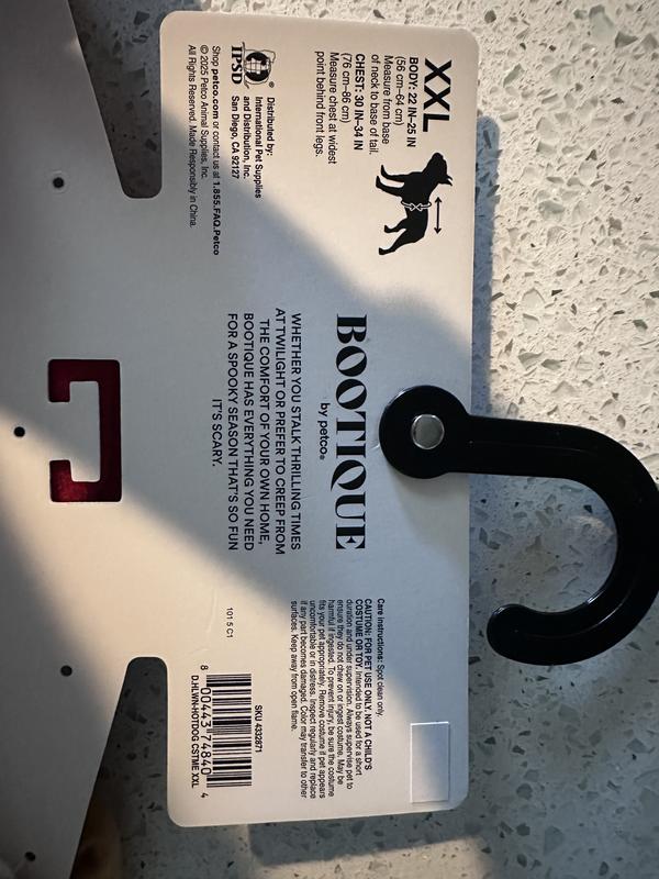 FOR PET USE ONLY. NOT SUITABLE FOR CHILDREN. Intended to be used for a short duration and under supervision. Always supervise pet to ensure they do not chew on or ingest costume. May be harmful if ingested. To prevent injury, be sure the costume fits your pet appropriately. Remove costume if pet appears uncomfortable or in distress. Inspect regularly and replace if any part becomes damaged. Color may transfer to other surfaces. Keep away from open flame.