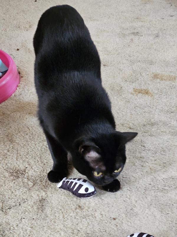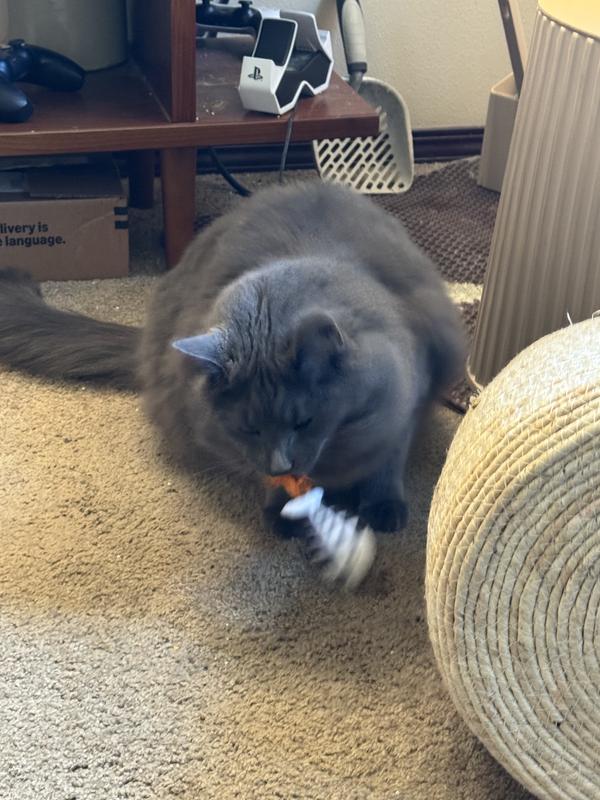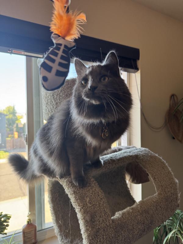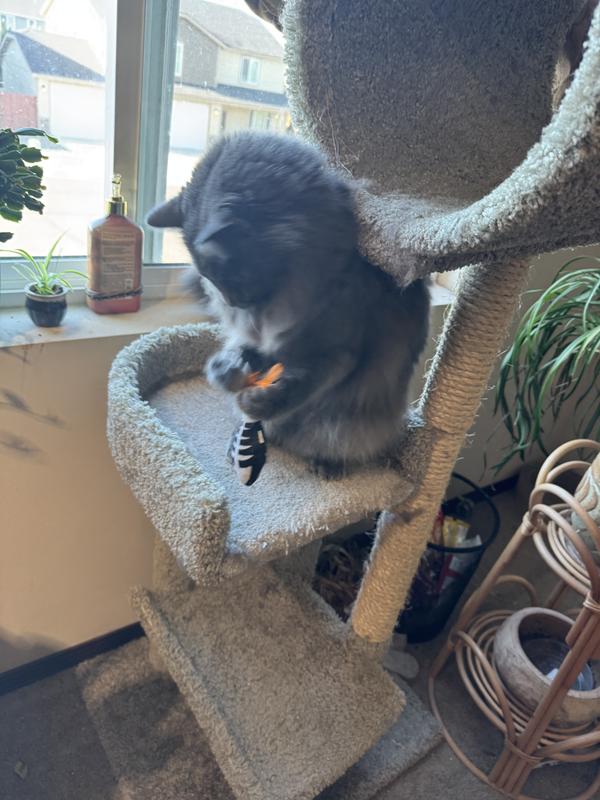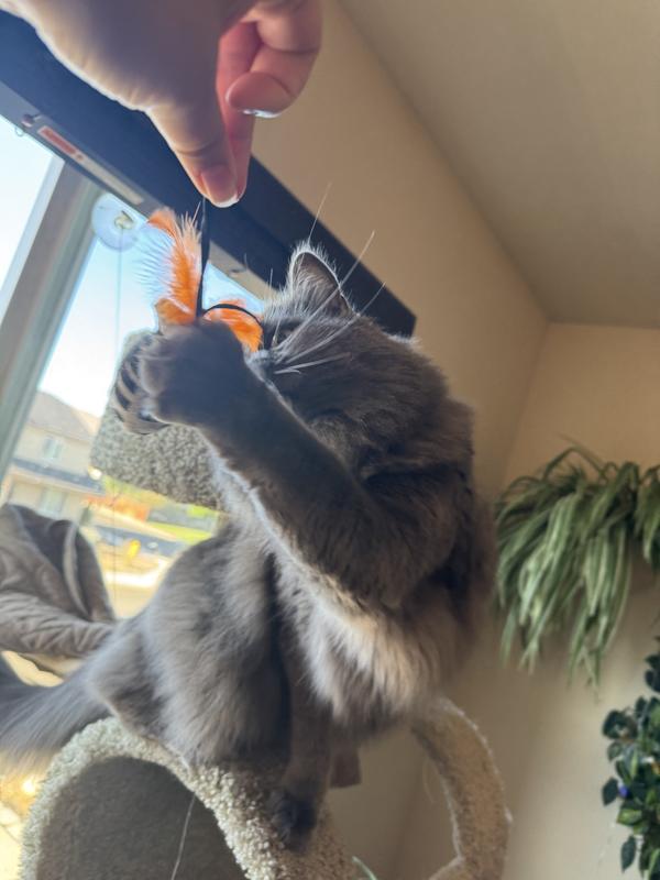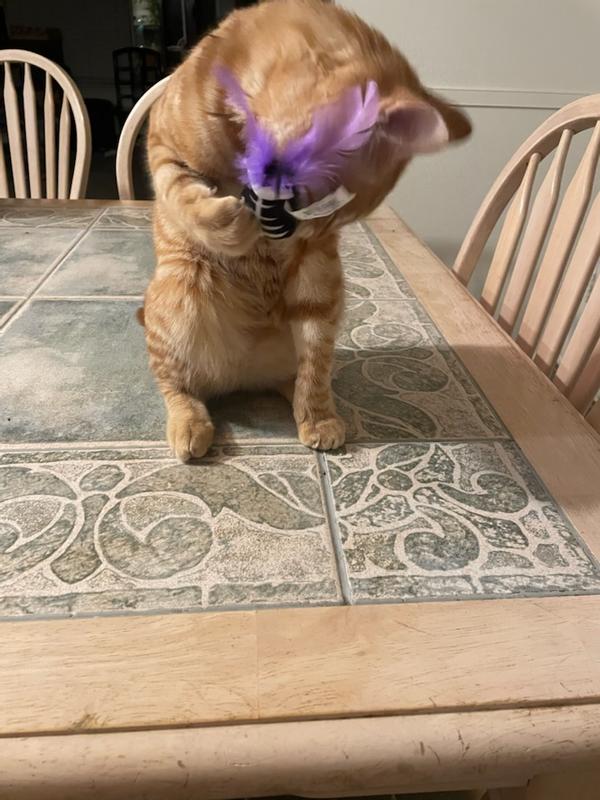 FOR PET USE ONLY. NOT A CHILD'S TOY. Small parts, small balls, and strings can present a choking hazard, gastrointestinal blockage or strangulation risk. Always supervise pet during play to prevent accidental swallowing of small balls or strings. Contains catnip. Not intended for consumption. Inspect regularly and replace if any part becomes damaged. Color may transfer to other surfaces.
