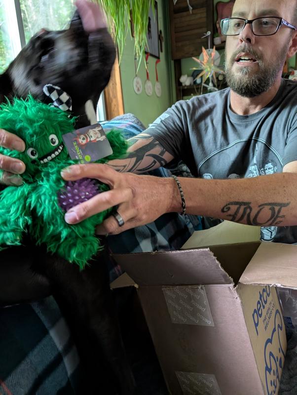 Bootique Monster Plush Dog Toy with Removable Rubber Ball, Medium