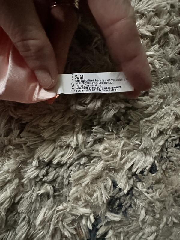 FOR PET USE ONLY. NOT SUITABLE FOR CHILDREN. Not for use with tie-out, leash, or as a restraining device. Always to be worn with collar in place. To avoid injury to pet neck, do not overtighten and check fit often. To prevent injury, insure neckwear fits your pet appropriately. Remove neckwear if pet appears uncomfortable or in distress. Intended to be used for a short duration and always under adult supervision. Never allow your pet to chew on the product. May be harmful if ingested. Inspect regularly and replace if any part becomes damaged. Color may transfer to other surfaces.