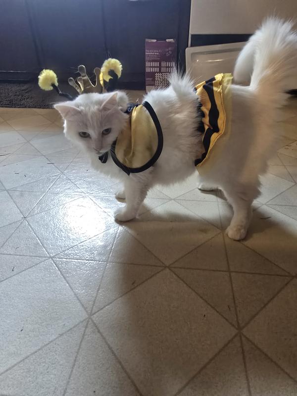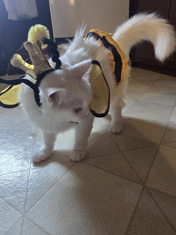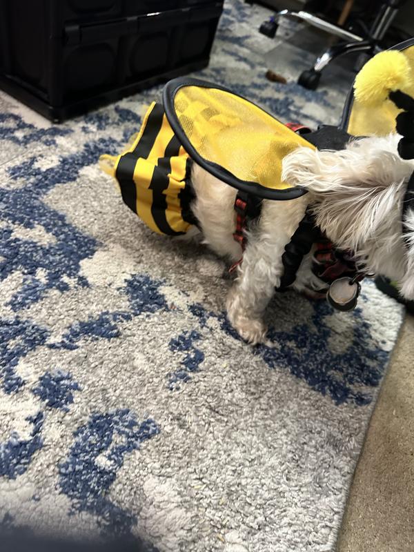 FOR PET USE ONLY. NOT A CHILD'S COSTUME OR TOY. Intended to be used for a short duration and always under adult supervision. To prevent injury, be sure the costume fits your pet appropriately and does not cover pet's eyes. Remove the costume if pet appears uncomfortable or in distress. Do not allow pet to chew on or ingest the costume or headwear. May be harmful if ingested. Inspect regularly and replace if any part becomes damaged. Some color transfer may occur. Keep away from open flame.