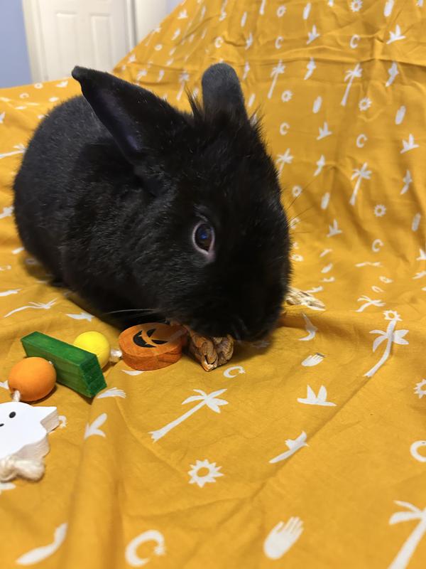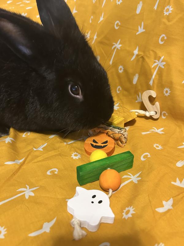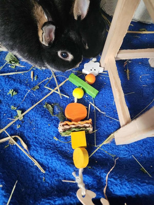 The bunnies love their new chew toy