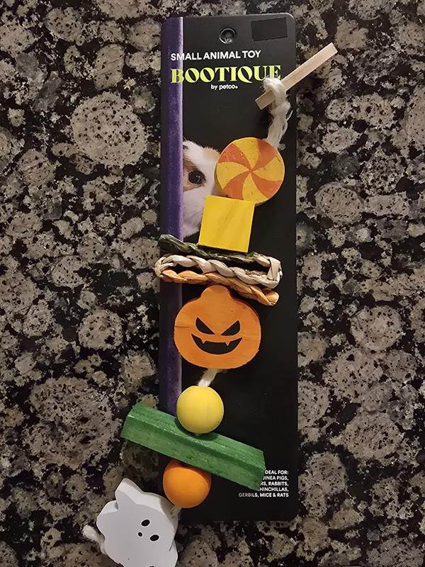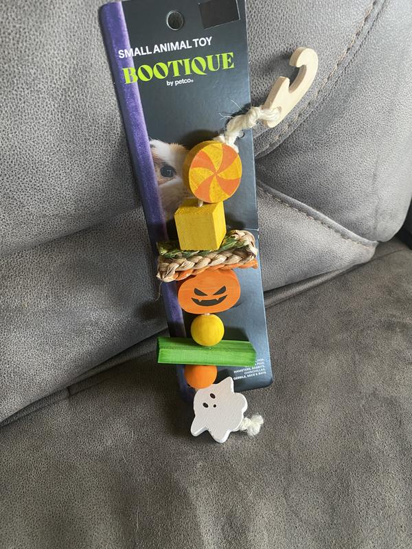 Treat your small animal pet to a super-spooky way to munch & play with this Halloween-themed Hanging Chew Toy from Bootique. Whether you stalk thrilling times at twilight or prefer to creep from the comfort of your home, Bootique has everything you need for a spooky season that's so fun, it's scary.