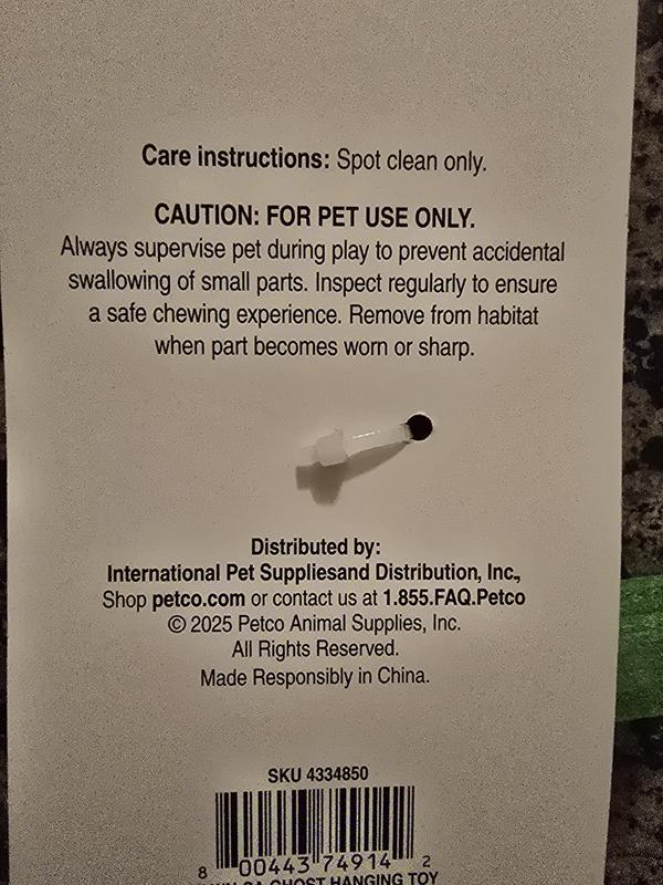 FOR PET USE ONLY. Always supervise pet during play to prevent accidental swallowing of small parts. Inspect regularly to ensure a safe chewing experience. Remove from habitat when part becomes worn or sharp.