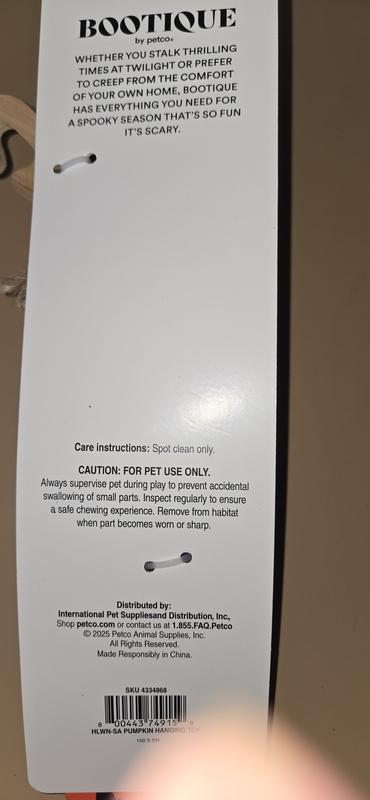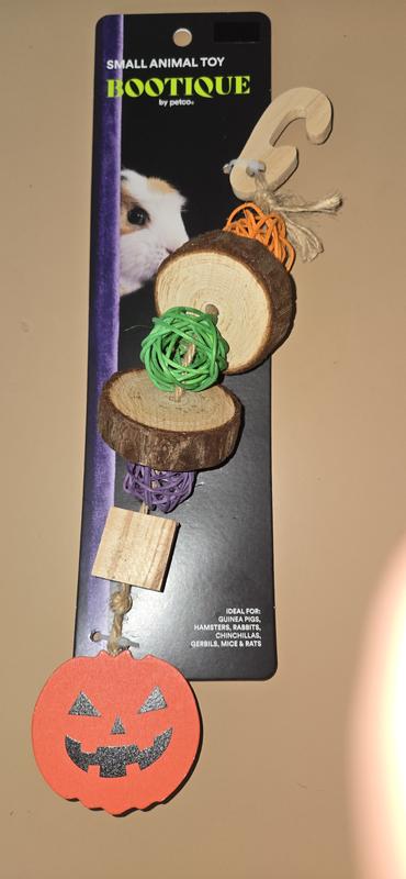 Treat your small animal pet to a super-spooky way to munch & play with this Halloween-themed Hanging Chew Toy from Bootique. Whether you stalk thrilling times at twilight or prefer to creep from the comfort of your home, Bootique has everything you need for a spooky season that's so fun, it's scary.