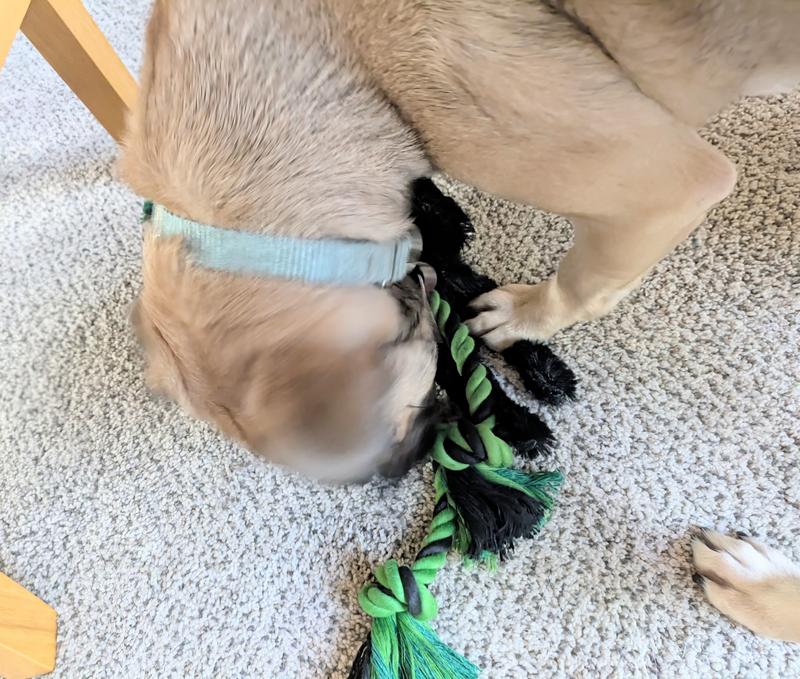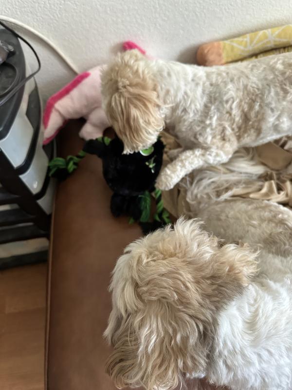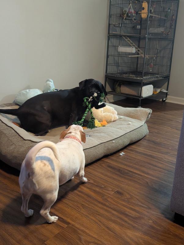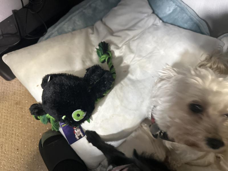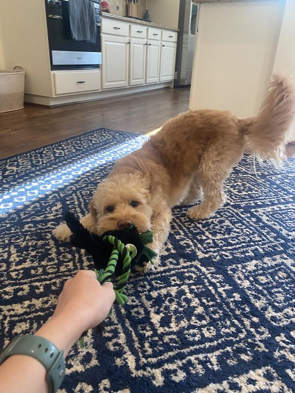 FOR PET USE ONLY. NOT A CHILD'S TOY. Small parts, small balls, ropes, and strings present a choking hazard and/or gastrointestinal blockage risk. Always supervise your pet closely during play to prevent accidental swallowing of small parts, rope or strings. Inspect regularly and replace if any part becomes damaged or badly frayed. Color may transfer to other surfaces.