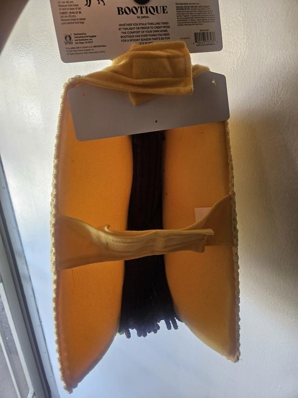 FOR PET USE ONLY. NOT SUITABLE FOR CHILDREN. Intended to be used for a short duration and under supervision. Always supervise pet to ensure they do not chew on or ingest costume. May be harmful if ingested. To prevent injury, be sure the costume fits your pet appropriately. Remove costume if pet appears uncomfortable or in distress. Inspect regularly and replace if any part becomes damaged. Color may transfer to other surfaces. Keep away from open flame.