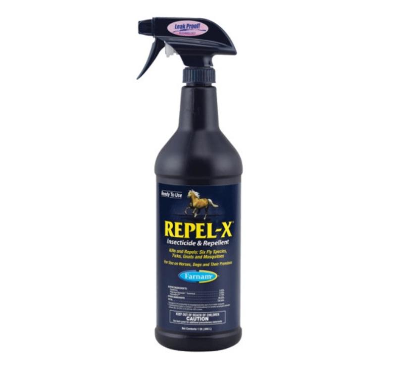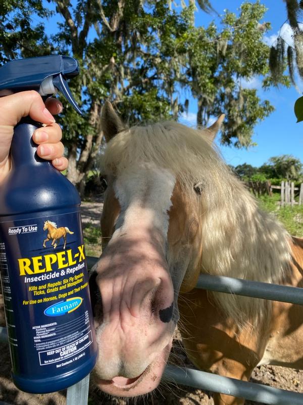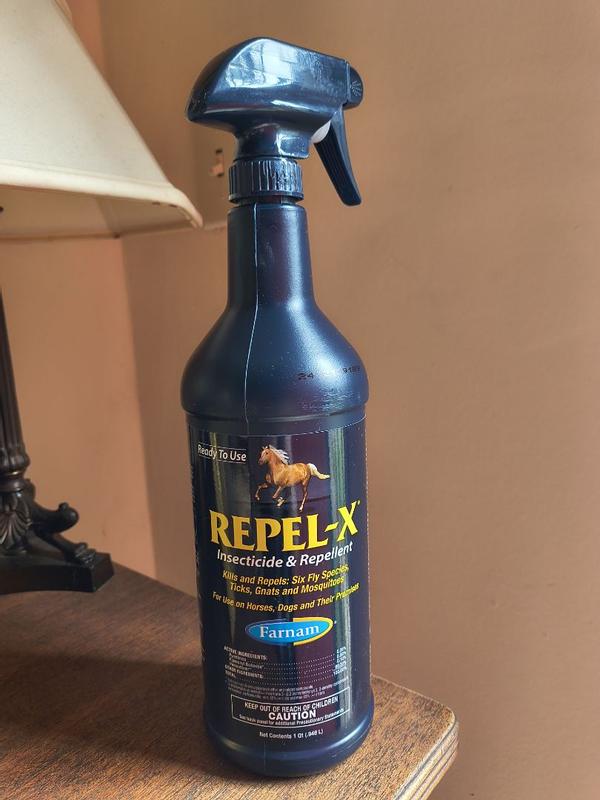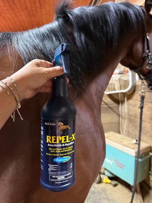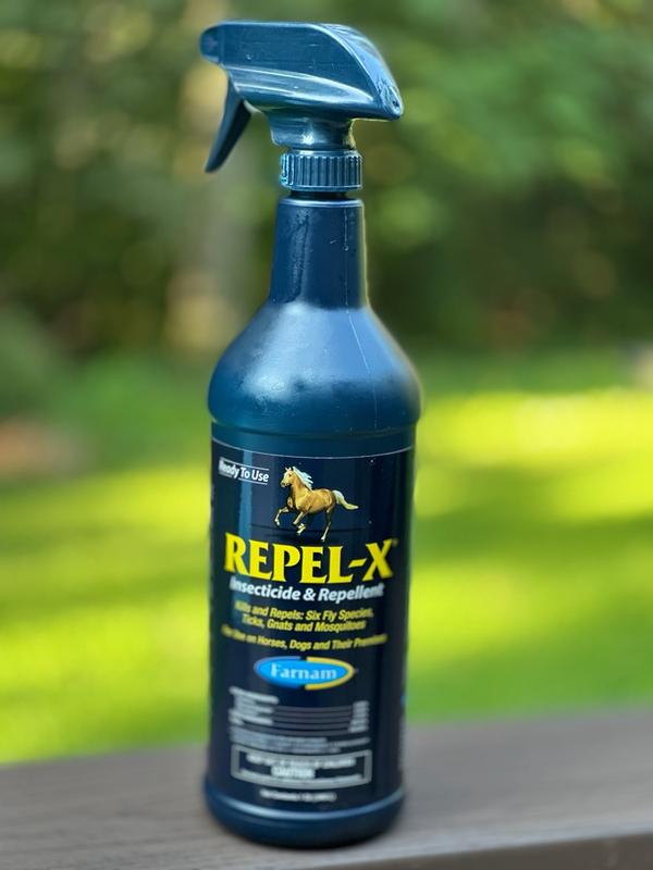 Horse health is important. Repel-X horse fly repellent is the best selling horse fly spray from Farnam for a reason. Actually, make that three great reasons! Repel-X is Farnam's practical, budget-friendly fly repellent for horses, dogs and their premises all these uses in just one bottle! Farnam Repel-X Insecticide and Repellent is ready-to-use so there is no mixing with water required. Just spray and go! Repel-X was the first fly repellent on the market in 1957 and continues to remain a horse owner's favorite equine fly spray today. The easy-to-use, water-based formula kills and repels six fly species, plus ticks, gnats and mosquitoes. It is an excellent tick repellent for horses and fly spray for dogs. This hard working spray with multiple uses is the one bottle you need in your barn for horse pest control.