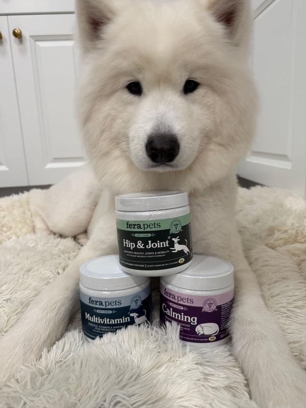 Help your dog live a vibrant, healthy life with Fera's Multivitamin Soft Chews. Packed with essential vitamins, minerals, omegas, probiotics, and joint-supporting nutrients, these veterinarian formulated chews support whole-body wellness-from immune health to digestion, skin, coat, and mobility. Perfect for daily use to fill nutritional gaps, promote long-term vitality, and help your dog thrive at every stage of life.