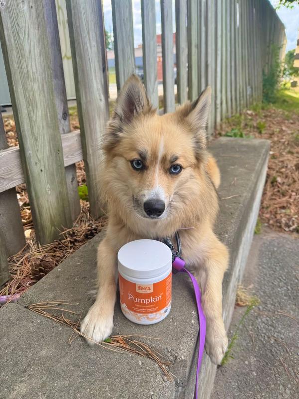 - - PUMPKIN PLUS - Fera's Pumpkin Plus fiber for dogs and cats is packed with 7 organic ingredients to help support regularity and a healthy digestive system. Regular fiber intake is essential for the everyday health of your pets and is linked to improved digestion, healthy poops, blood sugar control, and increased satiation