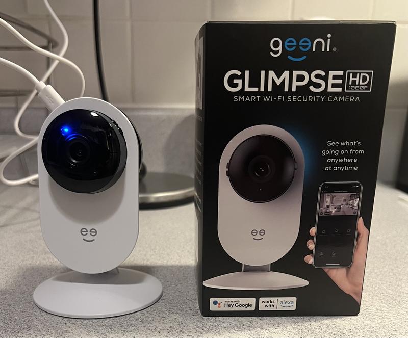 - - The Geeni GLIMPSE HD 1080p Smart Wi-Fi Security Camera gives peace of mind, anywhere, anytime. With a built-in sensitive motion sensor, you can monitor any area. The 135 degree wide-angle lens captures every moment with 24/7 Full-HD recording