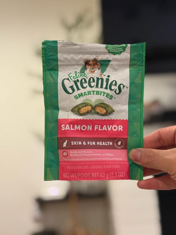 - - Contains one of FELINE GREENIES SMARTBITES Skin & Fur Natural Treats for Cats