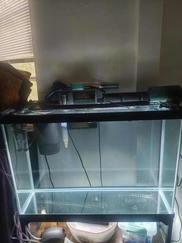External Care: Use a soft cloth and ammonia-free glass cleaner to keep outside of aquarium clean. Replace filter media every 2-4 weeks. Internal Care: Change 10-25% of aquarium water every 2-4 weeks, or as needed. Scrub aquarium wall with appropriate glass scrubber to reduce algae growth. Evaporation is common. Ensure water level is maintained.