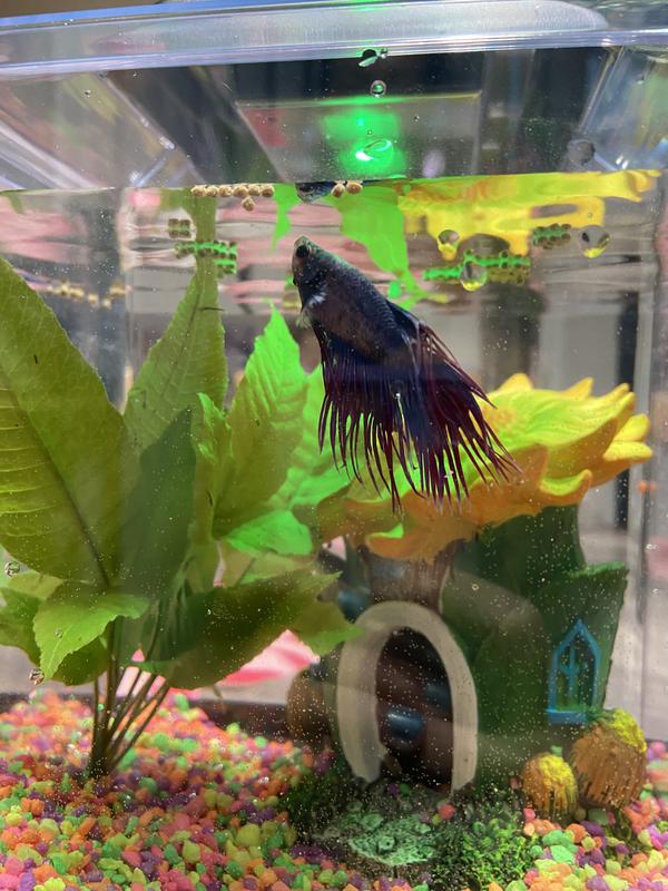 The Imagitarium 1.4 Gallon Betta Aquarium is a cube-shaped fish tank with LED lighting featuring 7 dazzling color options you can choose depending on time of day or night. This panoramic aquarium will showcase the natural beauty of your betta.