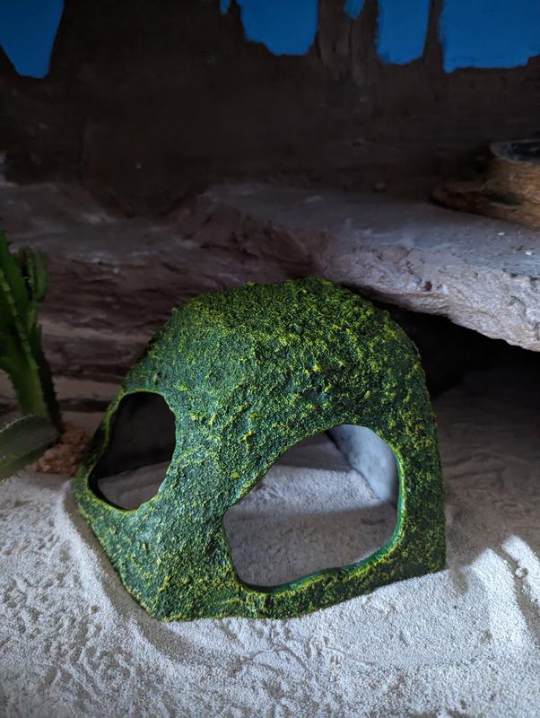 The Imagitarium Moss Covered Reptile Hideaway helps you create a rich and realistic looking habitat for your pet. It also boasts weighted construction to help keep it where it's been placed.