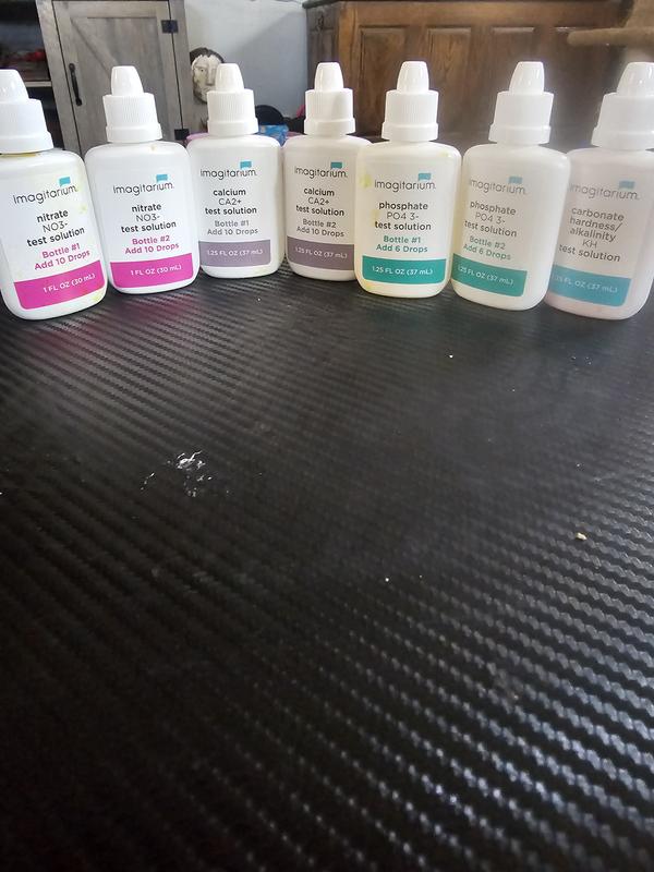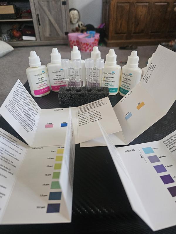 Testing your aquarium's water is fast and simple with Imagitarium Reef Master Test Kit. This easy-to-use kit includes test solutions, instructions, vials, and a color-coded charts to identify calcium, carbonate hardness, nitrate, and phosphate levels.
