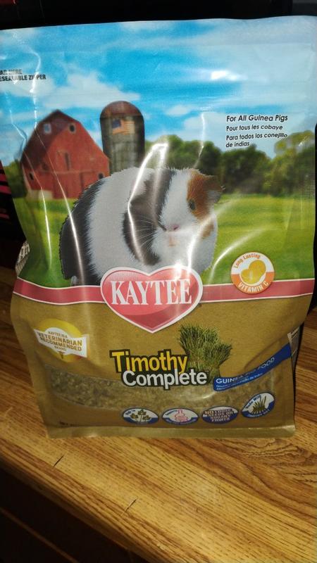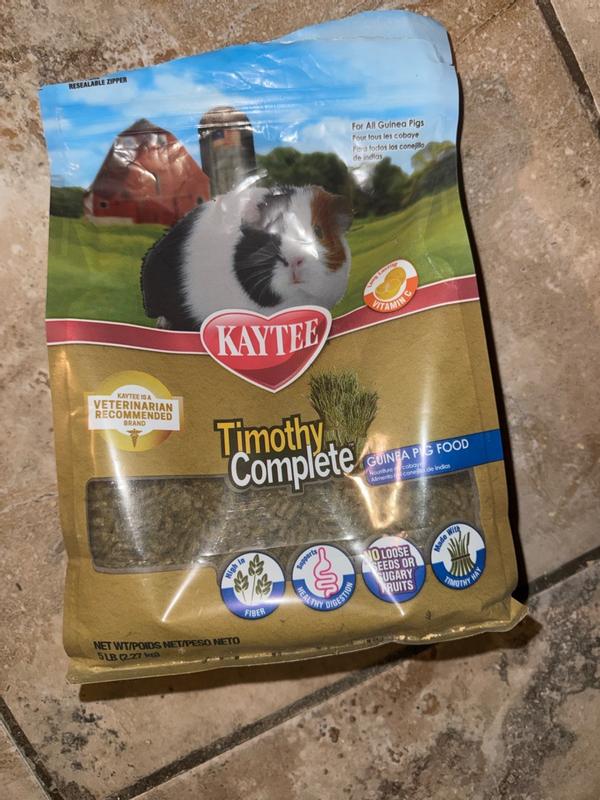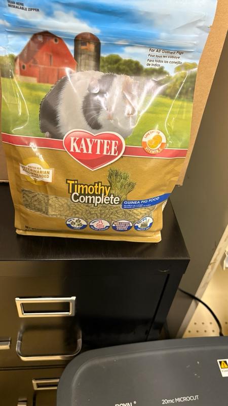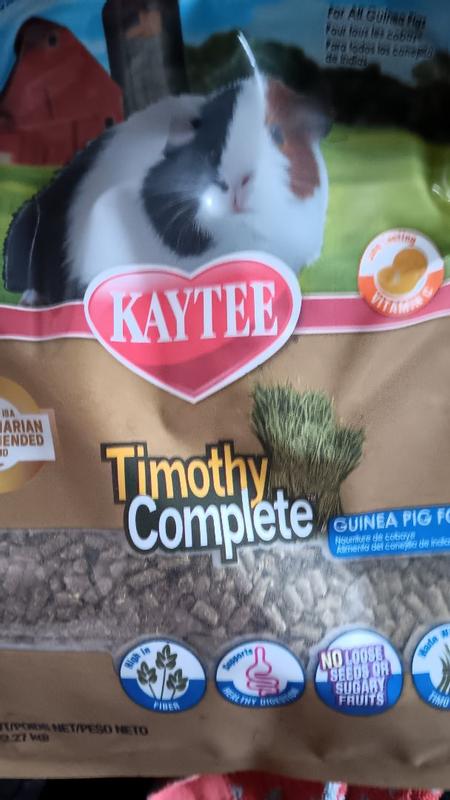 Kaytee Timothy Complete Guinea Pig food was developed by an animal nutrition expert to ensure your small pet gets the proper nutrition for a long, healthy life. Timothy Complete is a pelleted food made with nutritious hand-selected Timothy Hay and essential vitamins and nutrients necessary for your Guinea Pig. Timothy Complete is high in fiber to support digestive health and contains long-lasting vitamin C. Kaytee understands that sharing your life with a pet is not only enjoyable but very enriching. Kaytee shows our love by ensuring we provide your pet with the best nutrition for a long and healthy life. With over 150 years of nutritional experience, it's no wonder why Kaytee is at the heart of every healthy feeding routine.