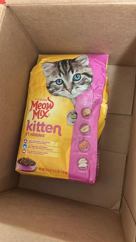 - - Contains one (1) 3.15-pound bag of Meow Mix Kitten Li'l Nibbles Dry Cat Food for kittens, now with a new look