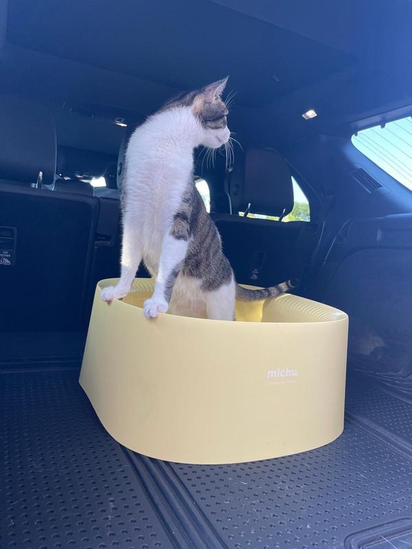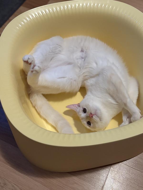 Michu Macaron Litter Box offers a spacious, high-sided design perfect for high-spraying cats while minimizing litter scatter. Made from durable, BPA-free materials, this stylish and easy-to-clean litter box complements any modern home.