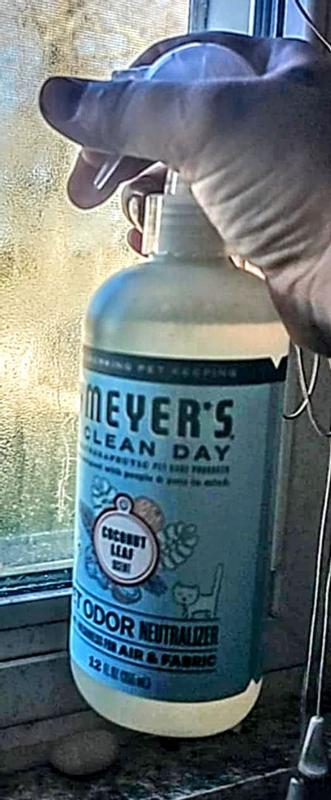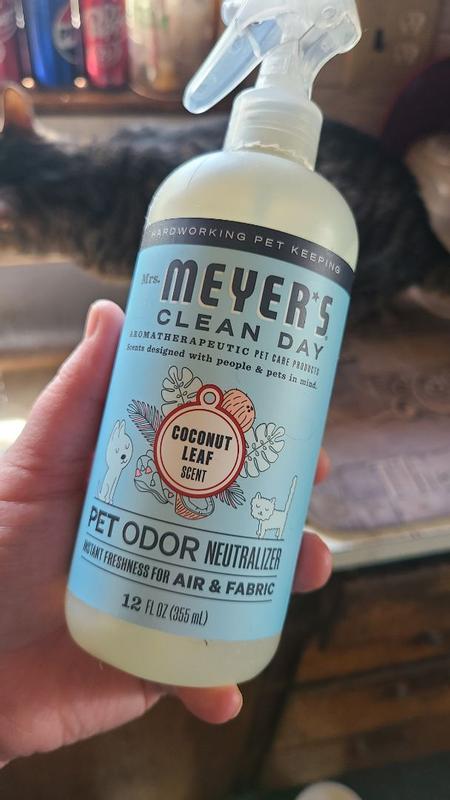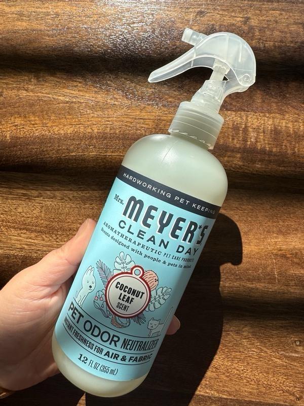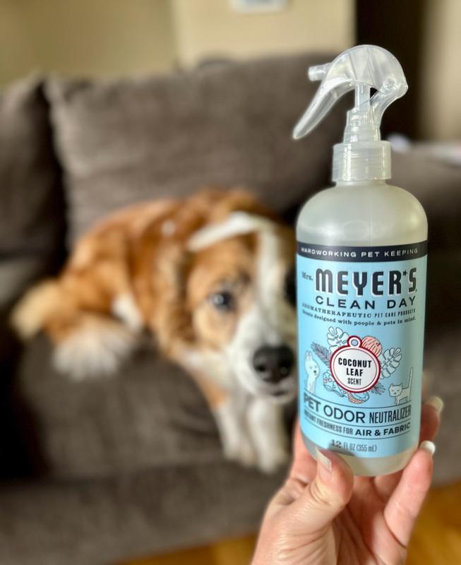 Mrs. Meyer's Clean Day for your pets. Our new Pet Odor Neutralizer is tough on lingering pet smells and stinks in your home, but friendly on whiskers and paws. This hardworking product not only adds instant freshness to air and fabric, but it fights pet odors at the source instead of masking them. It's a little spritz-me-up for your home.