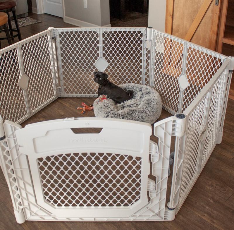 - - SLIDE RESISTANT: The innovative SuperGrip feet and skid-resistant pads keep the dog playpen firmly in place on both carpets and hardwood floors while protecting surfaces from scratches. From a cozy puppy kennel to a sturdy dog pen indoor for small dogs, this indoor dog playpen is a winner!