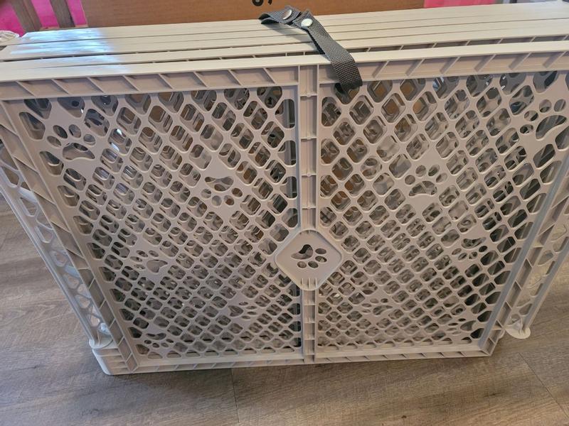 - - DURABLE & UV-RESISTANT: Crafted from durable, light gray plastic, our 6-Panel Paws Petyard dog playpen is crafted to withstand the elements, offering durability for both indoor and outdoor adventures. It's a perfect puppy playpen for indoors or a puppy pen for outdoors