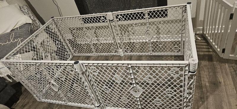 - - QUICK & SECURE: Create a secure play area with our spacious puppy pen, great for whelping box needs. Featuring exclusive Self-Locking SuperHinges, the pet pen clicks securely into place in seconds without the need for tools or twisting knobs, making setup quick and hassle-free