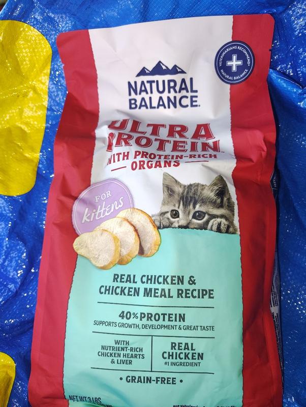 Natural Balance Ultra Protein Kitten Real Chicken & Chicken Meal Recipe is formulated specifically for kittens with our veterinary and nutrition experts to maximize protein, taste and nutrition for even the pickiest eaters. Each delicious bite of this chicken cat food is made with protein-rich organs for cats and is complete and balanced to give your cat the energy and taste they crave.