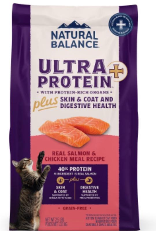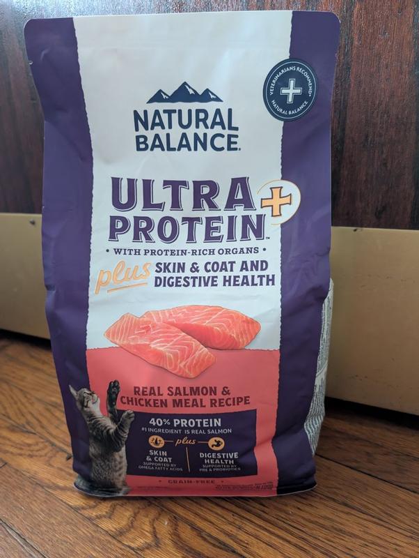 Natural Balance Ultra Protein Skin & Coat and Digestive Health, Real Salmon & Chicken Meal Recipe Plus Dry Cat Food, 5 lbs.
