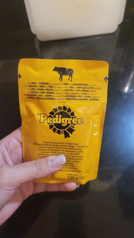 Daily feeding guide*: Feed 3 pouches daily per 10 lbs. of adult dog. *An individual dog's needs may differ. Mix it up - add in dry: Replace 1/2 cup of PEDIGREE Adult Complete Nutrition with 1 pouch (1 pouch = 3.5 oz., 1 cup = 8 oz. measuring cup). Refrigerate after opening (up to 3 days). Serve at room temperature.