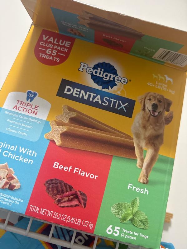 - - Contains one (1) 2.08 lb. 40-count pack of PEDIGREE DENTASTIX Original Flavor Treats for Large Dogs