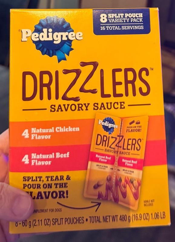 - - Pour on the Flavor: Coat Pedigree Drizzlers Savory Sauce over your dog's dry kibble and watch the flavor fill the bowl while maintaining the kibble's crunchiness