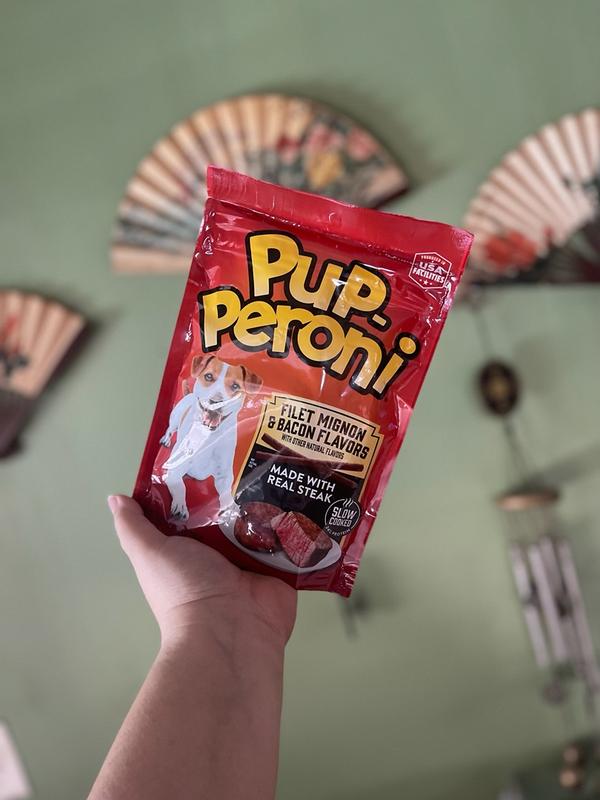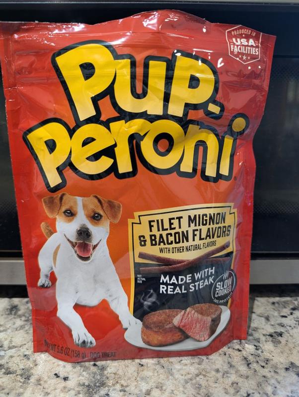 - - Contains one (1) 22.5 oz. bag of Pup-Peroni Filet Mignon & Bacon Flavor soft dog treats
