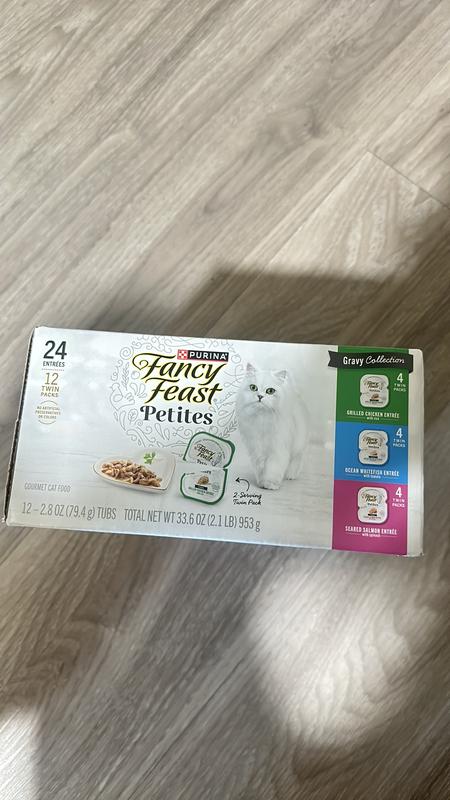 - - Fancy Feast wet food for cats twin packs divide into two compartments for no mess and no leftovers