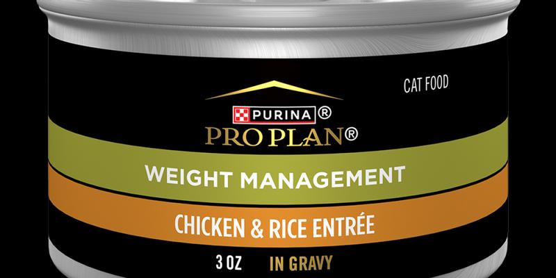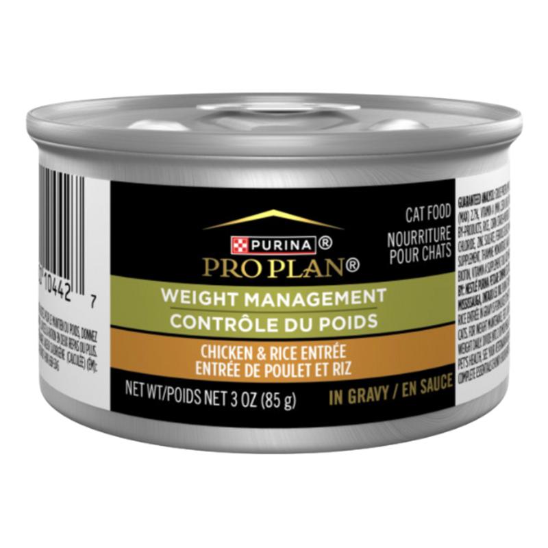 - - Pro Plan Adult Weight Management Chicken and Rice Entree in Gravy Cat Food is formulated with high-quality protein to support muscle mass maintenance during weight loss