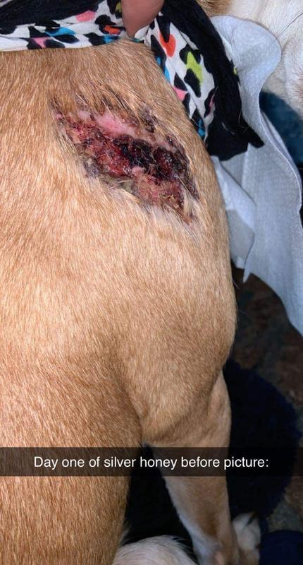 Silver Honey Hot Spot and Wound Care products heal rapidly, providing long-lasting protection and moisturizes with a formula that is tough on bacteria and gentle on skin. Fast-acting antibiotic-free treatment of hot spots, dermatitis, cuts, abrasions, sores, rashes and lesions. The ointment is ideal for targeted applications and for treating wounds or skin tissue with long-term scabbing. It is highly effective in softening older, persistent scabs to aid in removal while promoting the healing of the wound beneath.