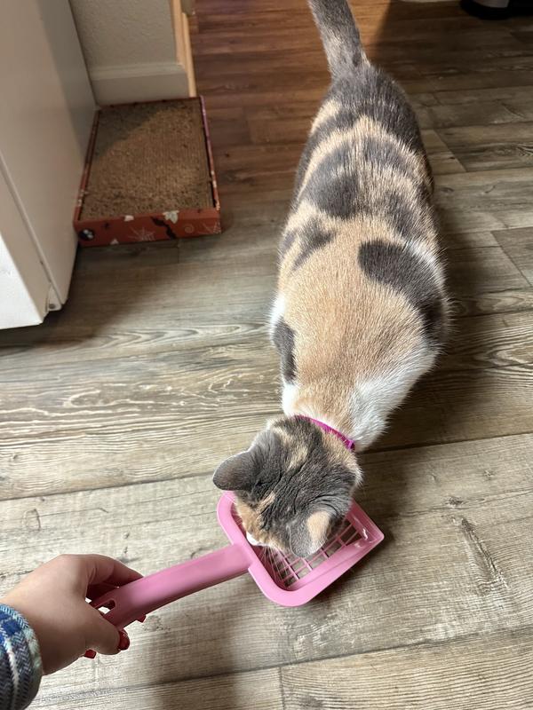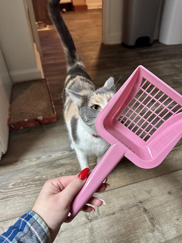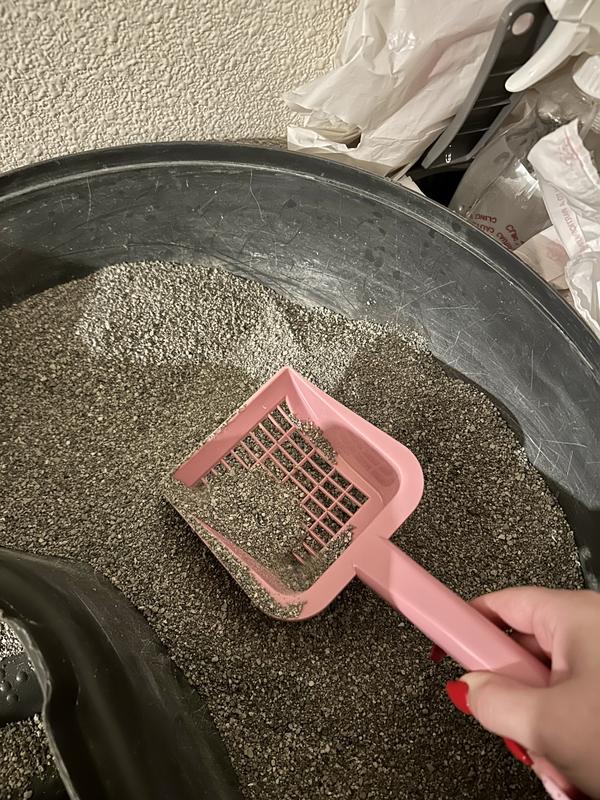 So Phresh Heavy Duty Litter Scoop provides heavy-duty sturdiness with tough plastic and a sifting grid. It works well with clumping, crystal, and regular litters for easy use and cleanability.