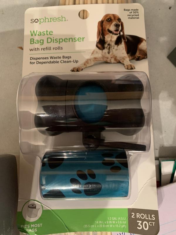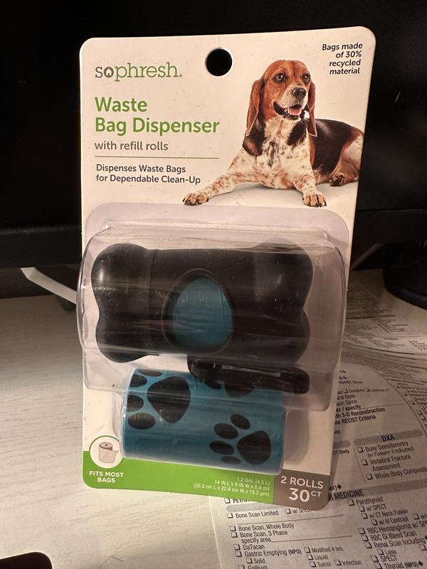 - - Black Bone Waste Bag Dispenser with Pawprint Refill Rolls from So Phresh